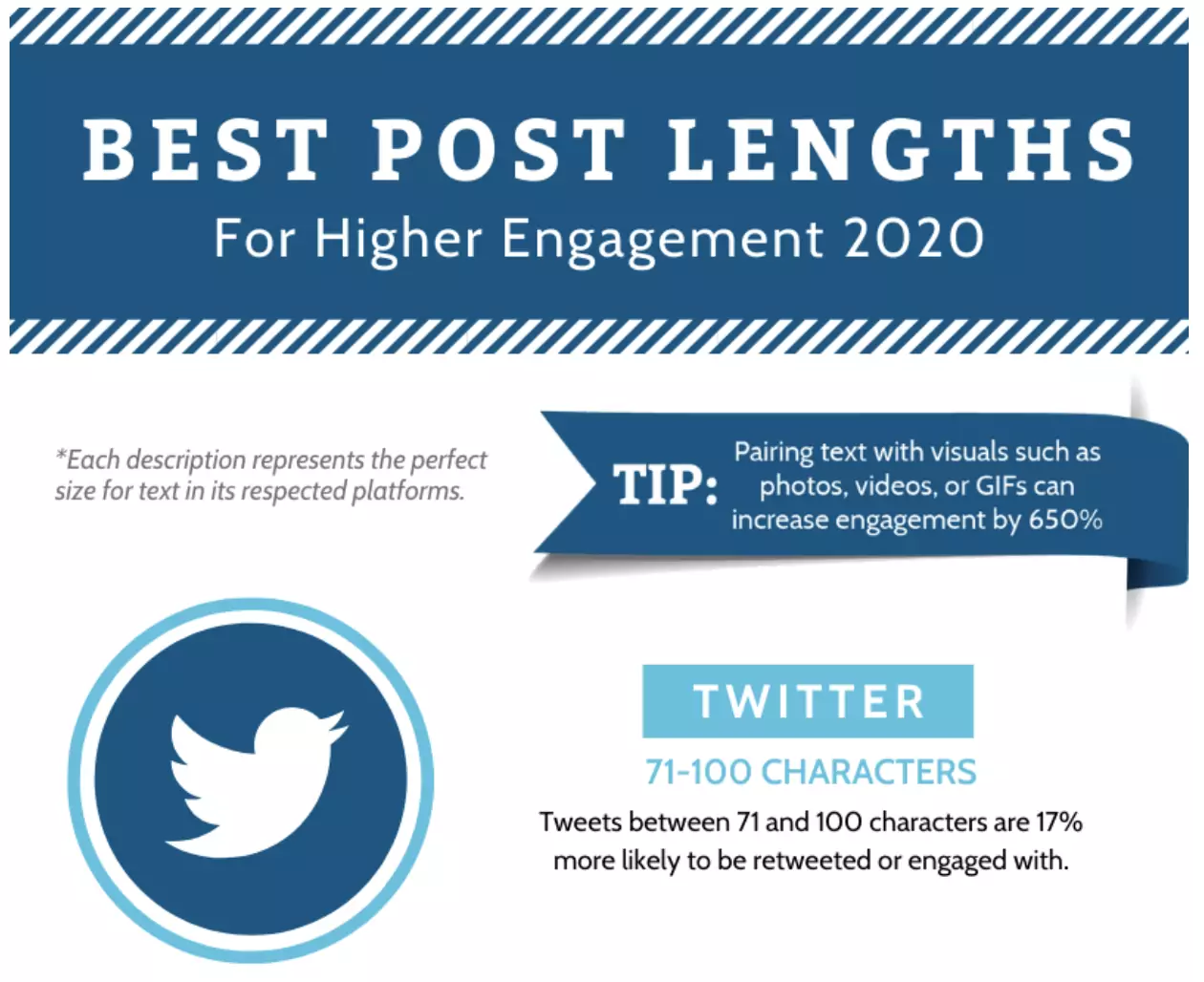 A great example of this, is a recent infographic by Sutherland Weston, looking into the best post lengths for higher engagements on each channel.