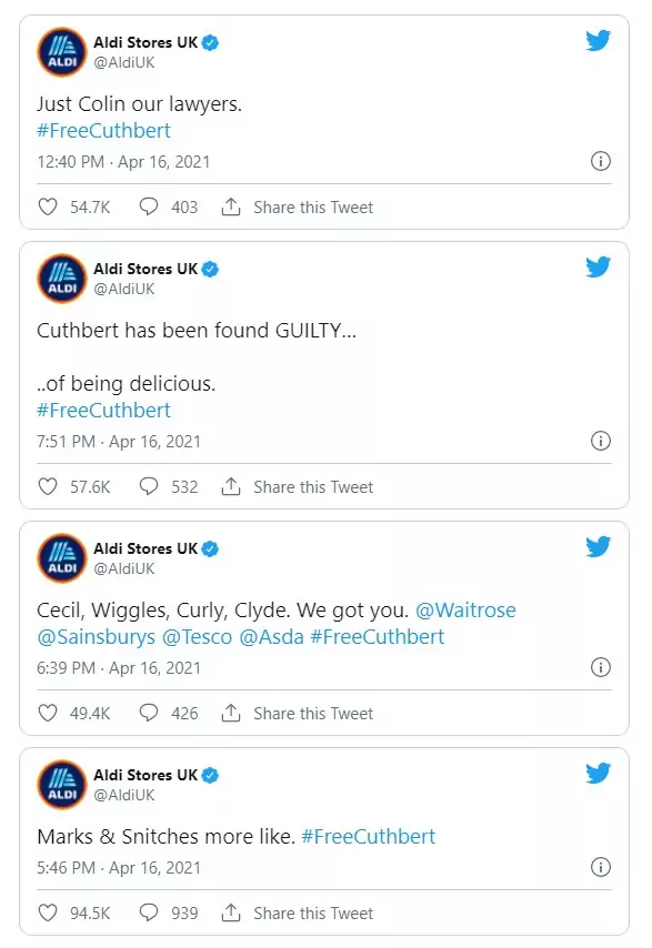 While M&S wanted to win in court, Aldi’s strategy was to win in the public opinion because “This is not just any court case, this is… #FreeCuthbert” -Aldi.