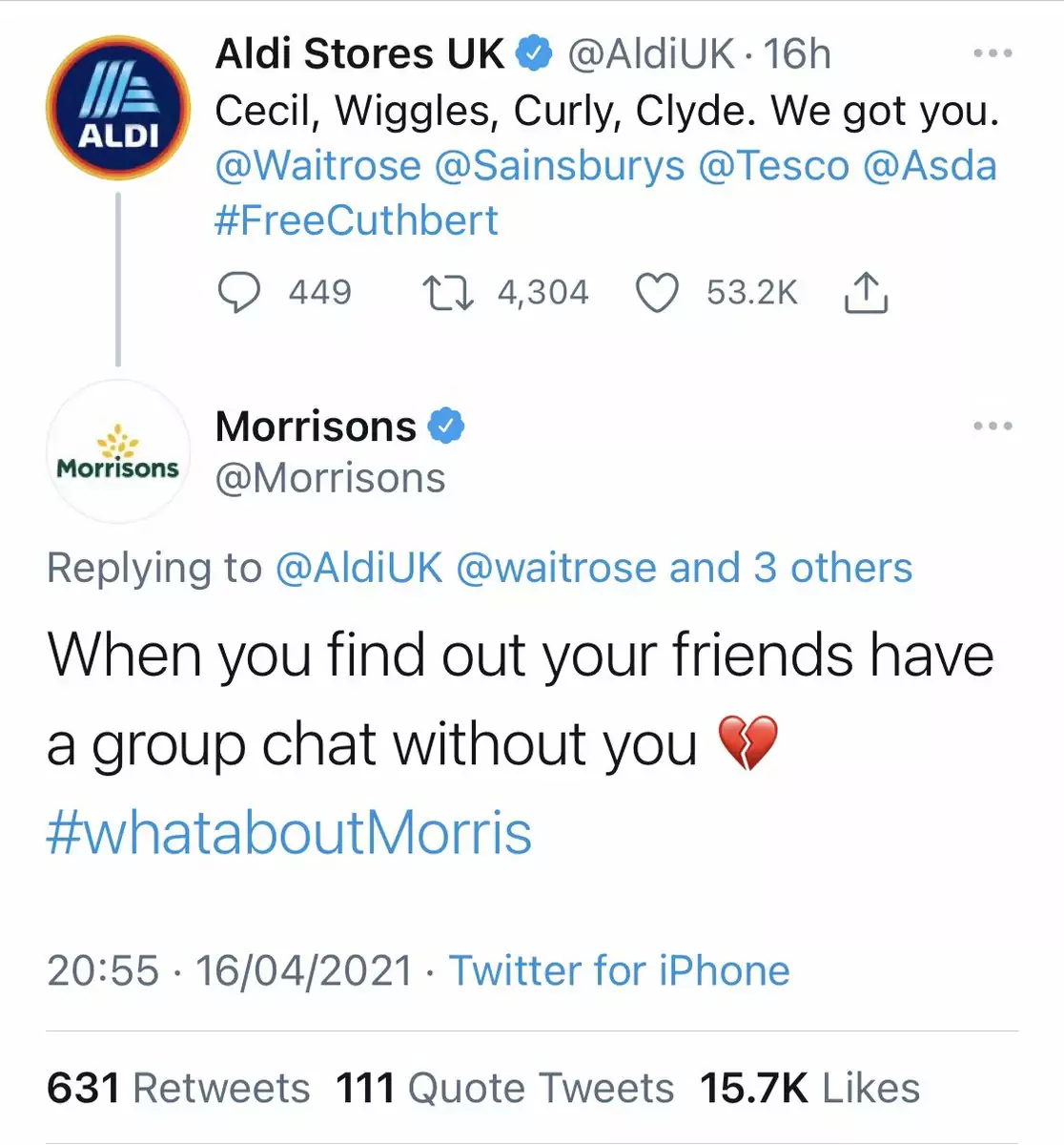 M&S didn’t reply to any tweets, but Aldi continued…