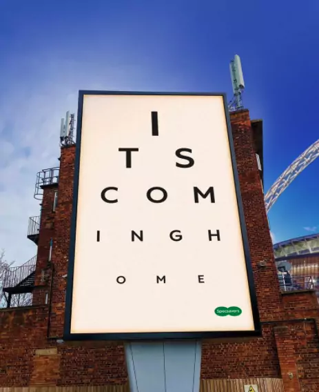 Specsavers celebrated England’s progress in this year’s Euros with an ‘It’s coming home’ campaign with a mimic of an eyechart found in branches of the opticians created by Tangerine Communications, very clever.