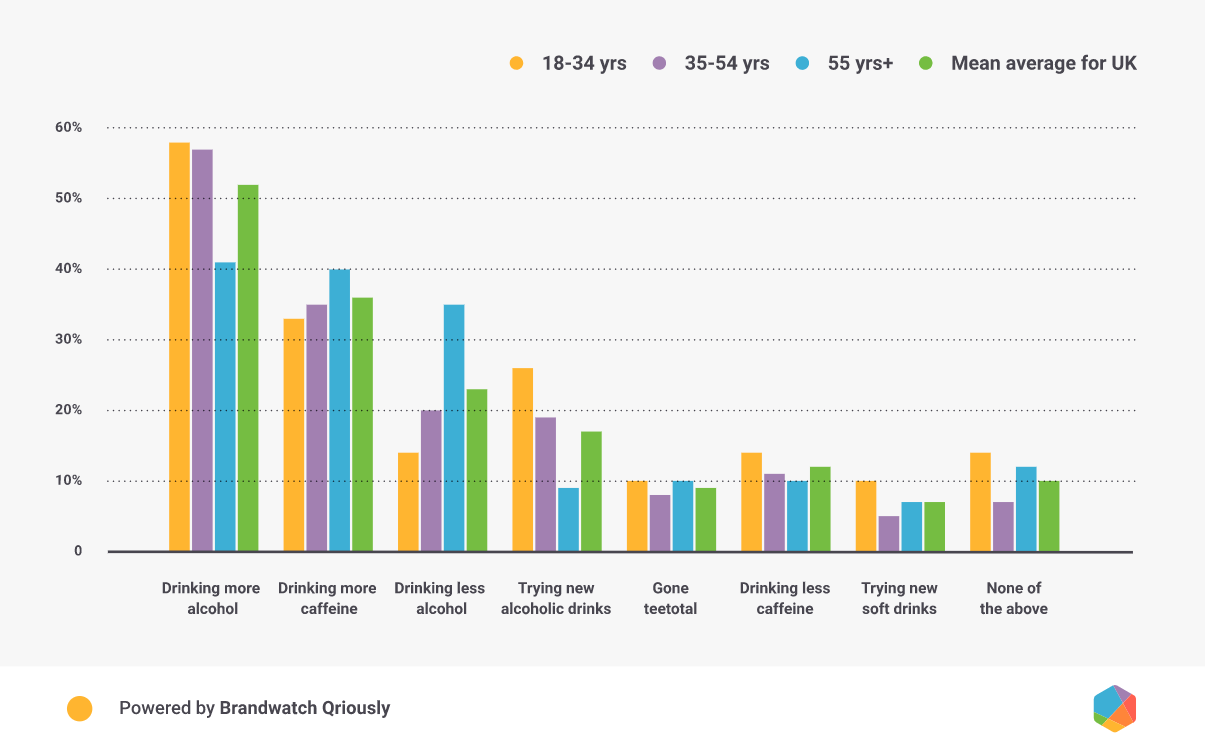 It’s quite possible that all these amazing cocktail videos are contributing to the “corona-stone”! 50% of the UK have increased their alcohol consumption and 45% are drinking more caffeine. And while 43% of people across Europe say they are snacking more, Brandwatch reports that 36% of consumers think it’s more important for a product to be healthy now, compared to before the outbreak!