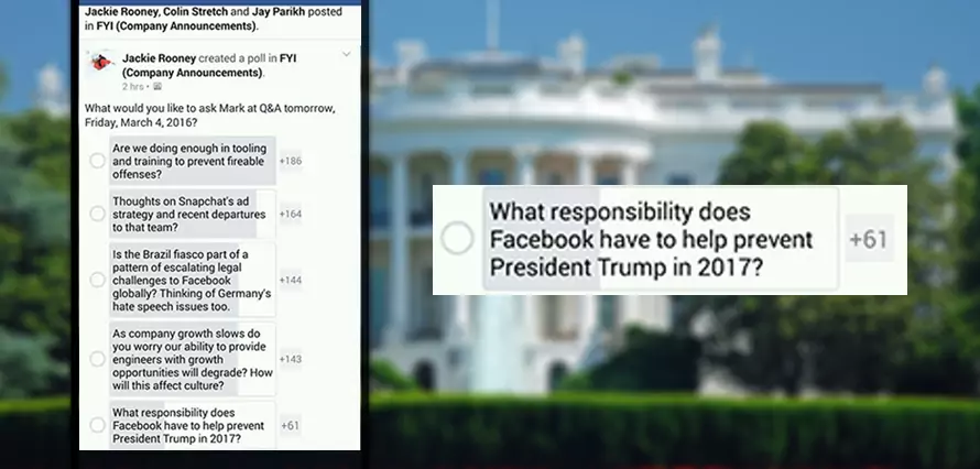 This power has not gone unnoticed by staff at Facebook HQ who last month used a company poll to ask mighty king Zuckerberg whether the company should try “to help prevent President Trump in 2017.”