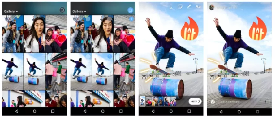 The feature is available on Android now and will be on iOS in the near future. Once available, you should see a new icon (similar to the multiple image upload feature on regular posts) on the “upload media” screen on Stories. The photos and videos will upload in the order you initially select them.