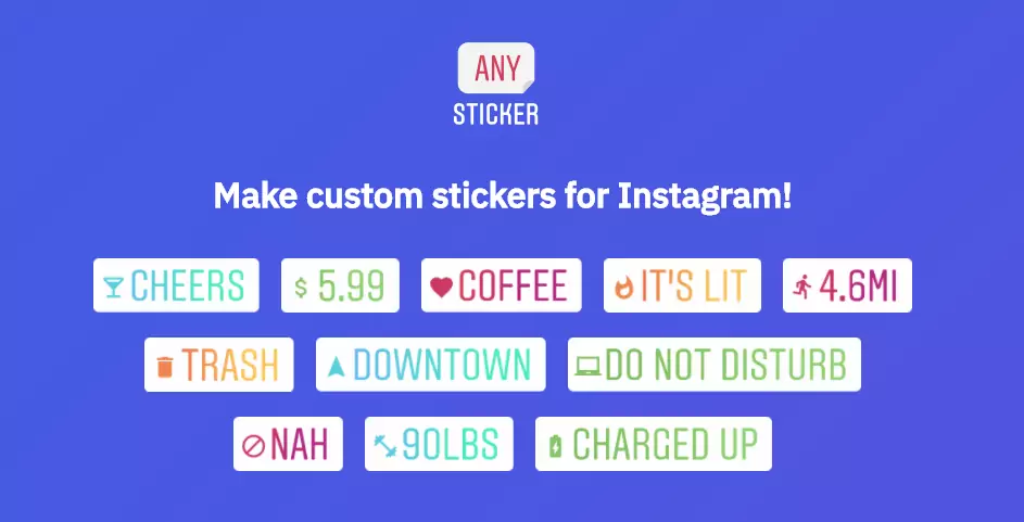But if you still sometimes struggle to find the right sticker for the occasion, there’s a new app in town which makes that a little bit easier. Any Sticker is an app that allows you to make custom stickers to use on Instagram. The stickers look very much like the ‘location’, ‘mention’ or ‘hashtag’ stickers on Instagram except with an added icon at the front to jazz them up a bit.