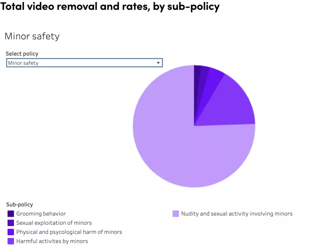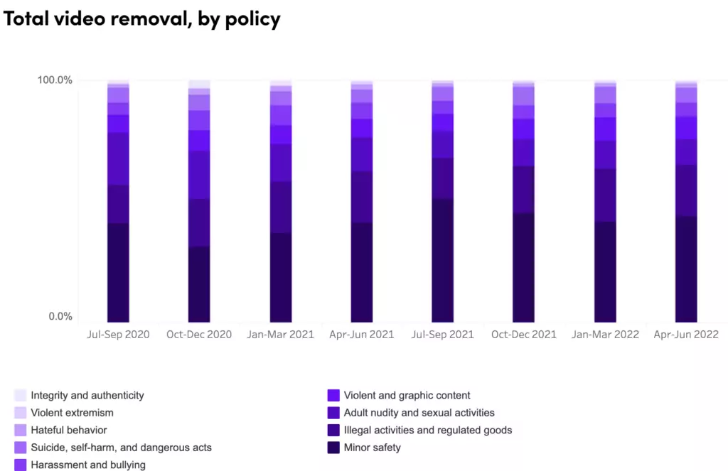 These are just a few of the reasons for video content taken down from the app – the report outlines a full overview of the most common concerns for rule violations, with safety being the top critical area.