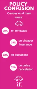 But let’s not leave it at that. After all, this doesn’t help us create more relevant conversations. Drilling deeper, we’re able to look into some of the triggers for this anger. Price increases led the charge. Driven by increases in renewals for most, but younger drivers are also outraged by Black Box requirements – it certainly isn’t seen as a benefit that brings costs down! Interestingly though, one topic contributed substantially to the collective annoyance: confusion over policies.