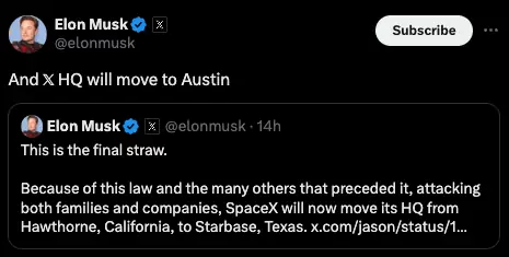 Elon Musk plans to relocate X’s headquarters from San Francisco to Austin, citing objections to California’s new legislation on school notifications of gender identity changes. The move aligns with Musk’s strategy to reshape X and integrate it closer with Tesla’s operations in Texas.