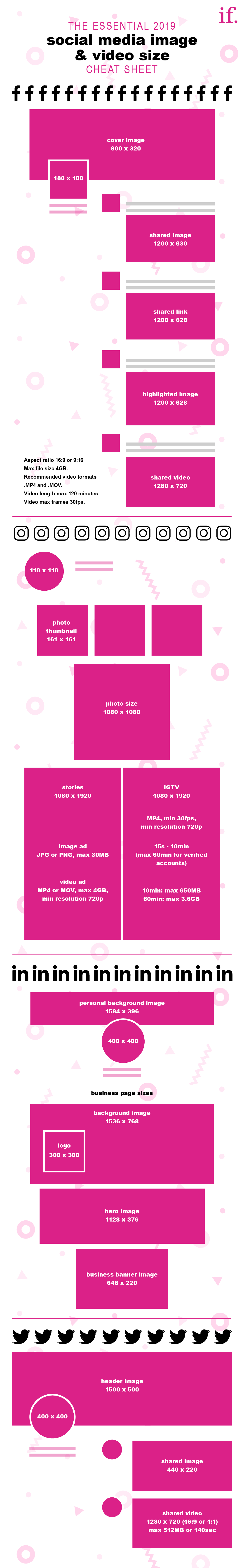 Visuals play an important part when it comes to social campaigns, and the continuous rise of image-based formats like Stories means that visuals are here to stay for good. Now, if you’re not using high-quality images, you’re definitely missing out – but with optimal image formats changing all the time, it can be hard to keep up and ensure that your posts always look the best they can across all your social channels. This is why we are giving you a handy little cheat sheet with all the main social sizes. And if you ever do get stuck with anything you can always drop us a line 🙂