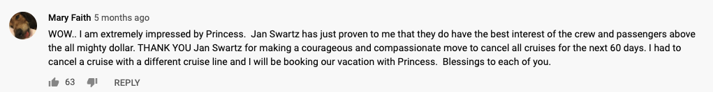 Princess builds strong, long lasting relationships with key influencers. Not hundreds, but a few. Influencers who are still talking about their last cruise even during lockdown. That says it all doesn’t it?