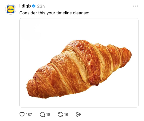 Aldi is the other obvious reference point. The #FreeCuthbert saga showed how a supermarket can turn a product moment into a running narrative the public wants to follow, then share. More recently, the “Aldeh” store sign in Prestwich became a shareable cultural object in its own right, the kind of offline joke that spreads online because it feels like a wink to the internet.