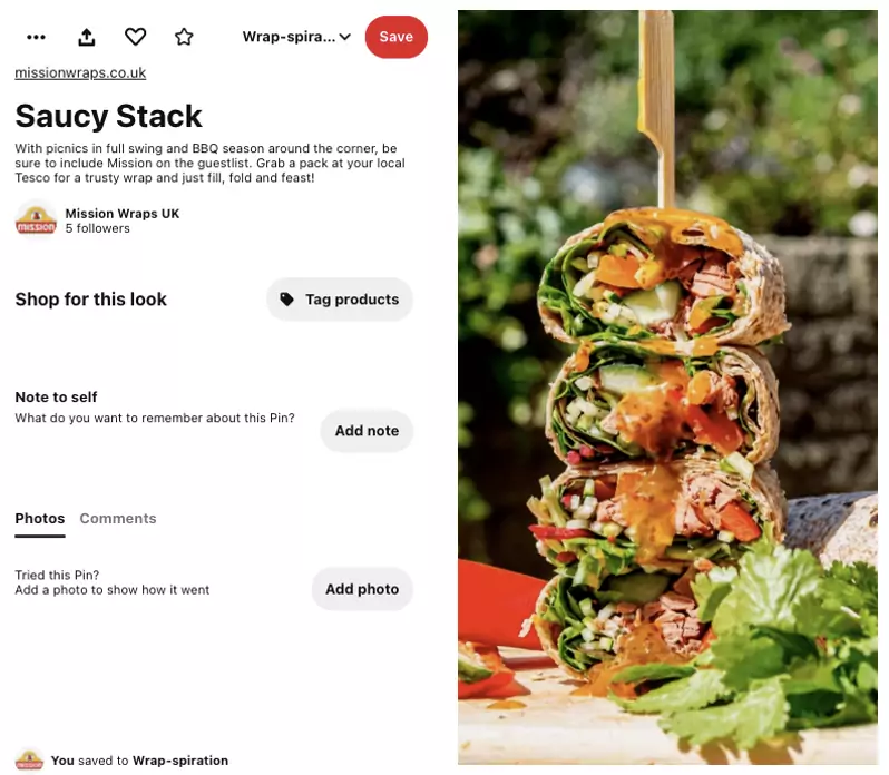 - The channel also provided examples of Tesco themselves successfully using the platform for Recipe Rich Pins, driving users to their eCommerce site, so we trusted the audience would be receptive